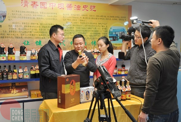 四川電視臺(tái)《健康食品進(jìn)萬(wàn)家》欄目組到四川清香園調(diào)味品公司拍攝專題片