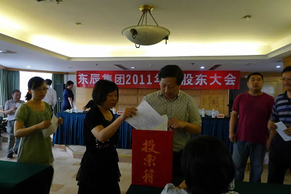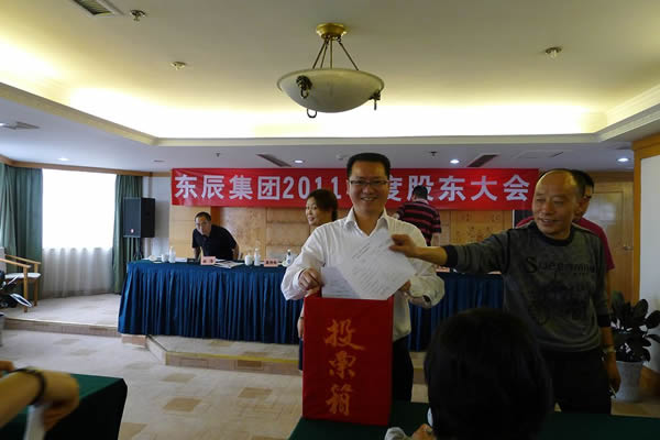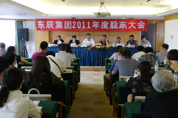 2012年5月11日上午10點(diǎn),東辰集團(tuán)2011年度股東大會(huì)在王子大酒店舉行。近50名股東參加了會(huì)議,代表股份1877.8萬股,占公司有表決權(quán)股份總數(shù)的81.73%,符合《中華人民共和國公司法》和本公司章程的有關(guān)規(guī)定。