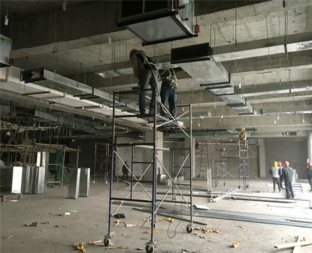 1、時尚百貨:室內(nèi)各樓層吊頂正在打吊筋,安裝上配合安裝風管、消防管道。