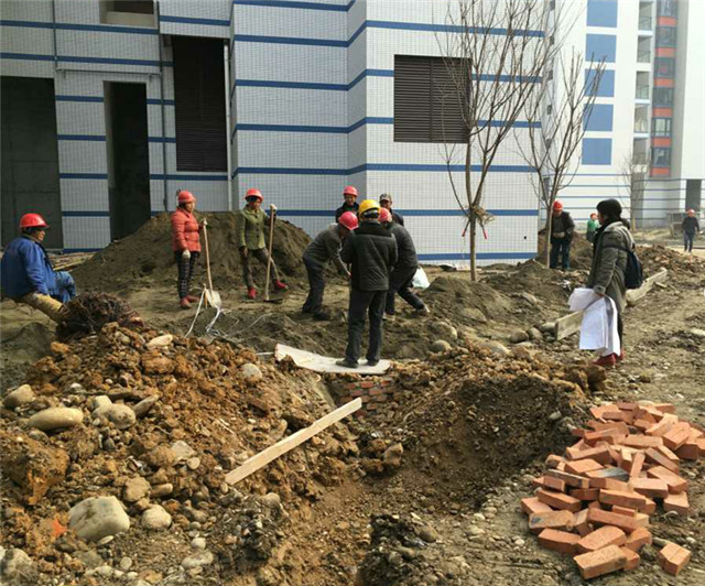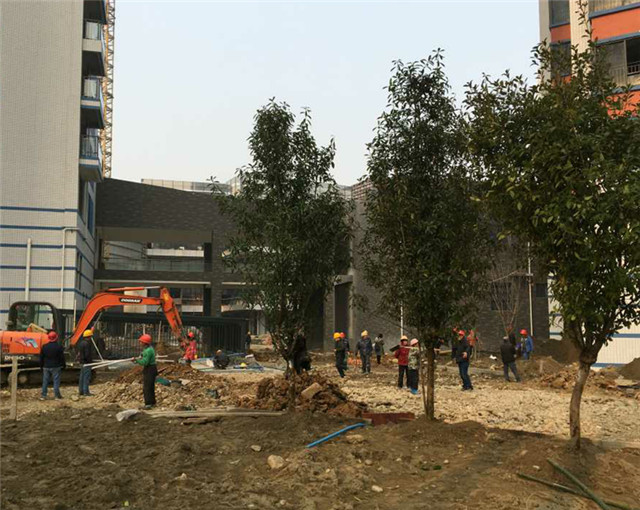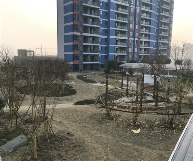 6、室外附屬:小區(qū)內(nèi)鋪裝墊層已全部澆筑完畢,部分喬木、灌木已種植。