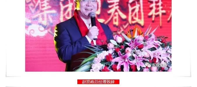 趙賢政總經(jīng)理作了新年致辭,趙總向?yàn)楣景l(fā)展作出巨大貢獻(xiàn)的合作伙伴及社會(huì)各界朋友,向公司3000多名員工及家屬表示深深地謝意,并致以節(jié)日的問(wèn)候和新春的祝福! 2017年,對(duì)每一位中國(guó)人而言意義重大。黨的十九大隆重召開(kāi),為實(shí)現(xiàn)中華民族偉大復(fù)興的中國(guó)夢(mèng),描繪了嶄新藍(lán)圖。2017年,也是東辰集團(tuán)在穩(wěn)步發(fā)展的道路上再次取得豐碩成果的一年。這些成績(jī)的取得,凝聚著公司全體員工的智慧和汗水,向大家表示崇高的敬意和衷心的感謝!