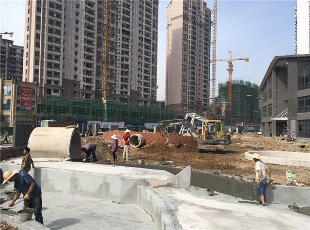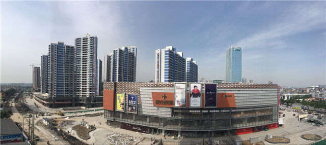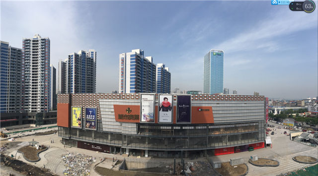 7、室外附屬:室外石材鋪裝完成,居然之家四層屋面鋪裝及綠化施工完畢。A、B區(qū)中間市政道路正在施工中。