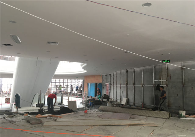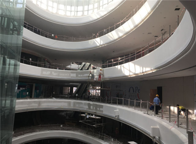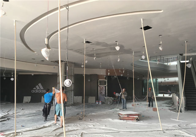 1、時尚百貨:一至五層公共區(qū)域吊頂、地面裝修施工完成,正在安裝燈具,各商家正在裝修中。3個中庭腳手架已全部拆除,裝修整體效果初步展現(xiàn)。