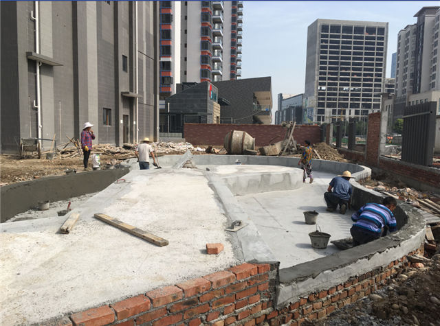 6、室外附屬:小區(qū)內(nèi)人行道區(qū)域面層粘貼全部完成,喬木、灌木、綠化種植全部完成。小區(qū)外圍地磚面層鋪貼完成。幼兒園室外正在進(jìn)行附屬施工。