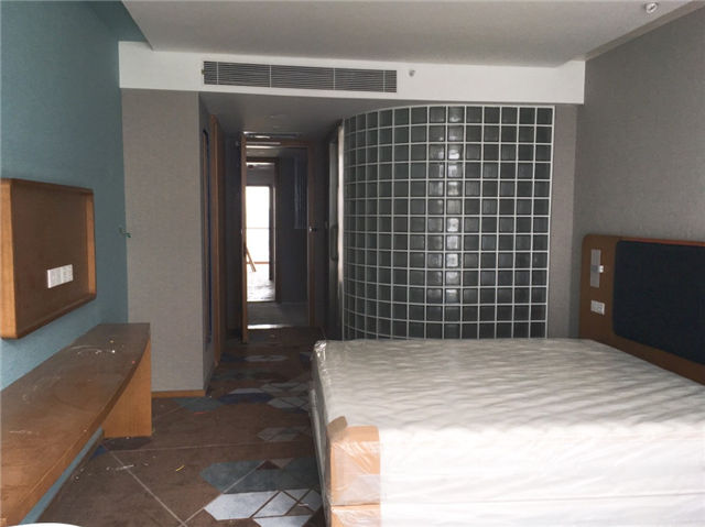 3、酒店:各樓層客房內(nèi)天棚、墻紙、木門、隔斷、衣柜,鏡面、地毯、衛(wèi)生潔具、洗浴配件已安裝完成,床和家具正在安裝中。外立面幕墻、主入口雨篷施工完成。