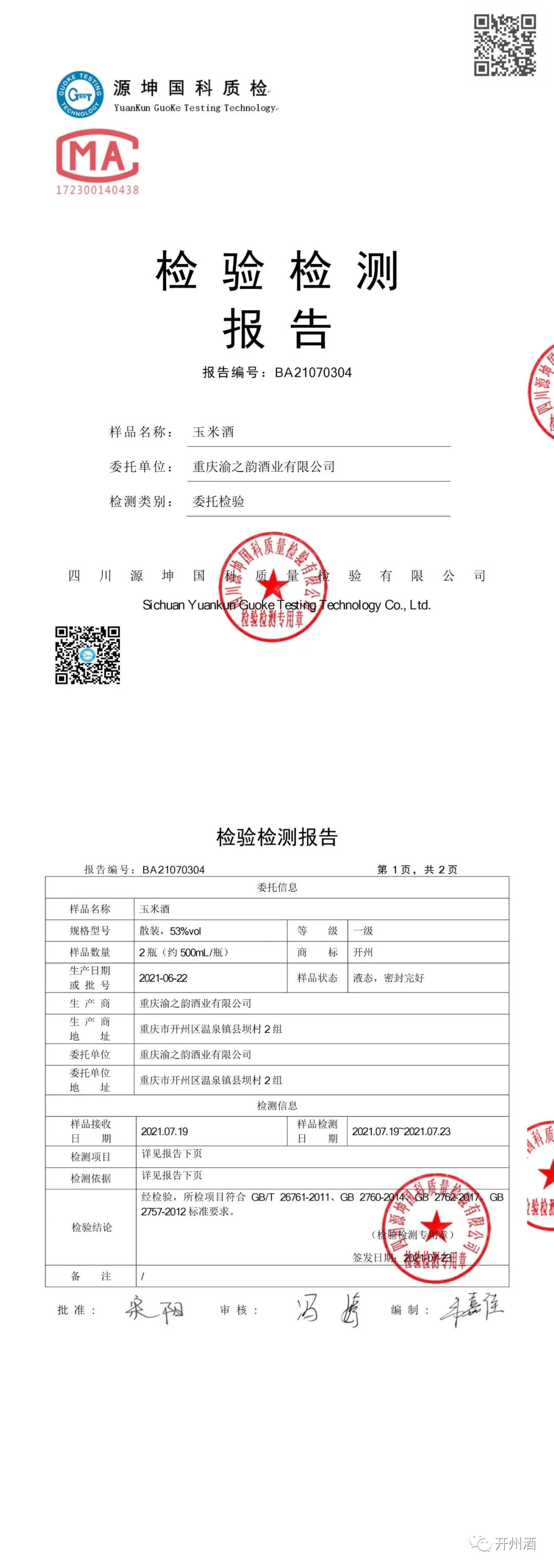 2021年最新檢驗(yàn)報(bào)告(53度高粱酒)
