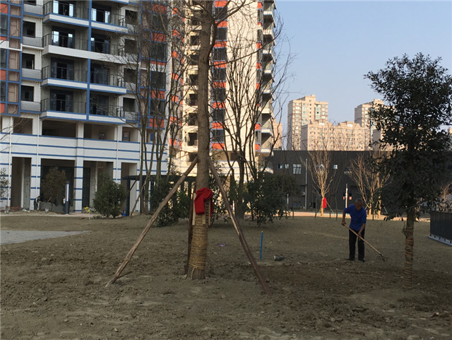 6、室外附屬:小區(qū)內(nèi)人行道區(qū)域面層粘貼全部完成,喬木、灌木已種植,綠地整形完成。小區(qū)外圍正在做面層鋪貼施工。