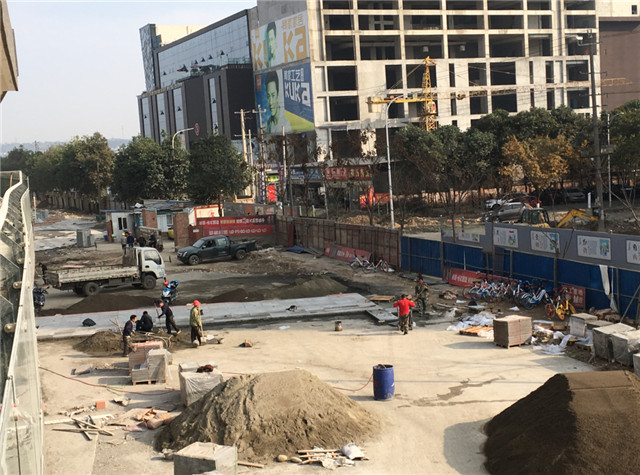 7、室外附屬:居然之家主入口室外附屬全部完成;時(shí)尚百貨及弘光路一側(cè)廣場大面積石材鋪貼完成,8#、9#樓一側(cè)室外鋪裝區(qū)域混凝土墊層已澆筑,正在做石材面層粘貼。居然之家四層屋面鋪裝及綠化施工完畢。A、B區(qū)中間市政道路正在進(jìn)行開挖、埋管施工中。