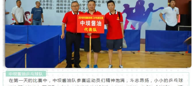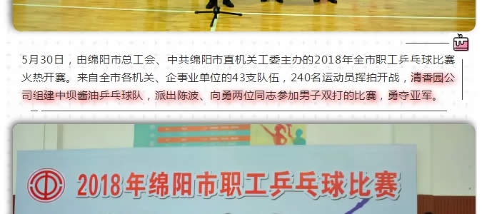 中壩醬油組隊參加2018年綿陽市職工乒乓球賽勇奪亞軍